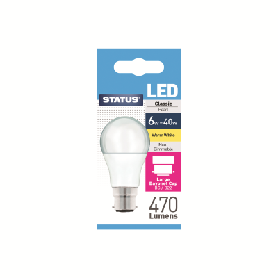 Status LED GLS Bulb 6W Warm White BC Box Pack