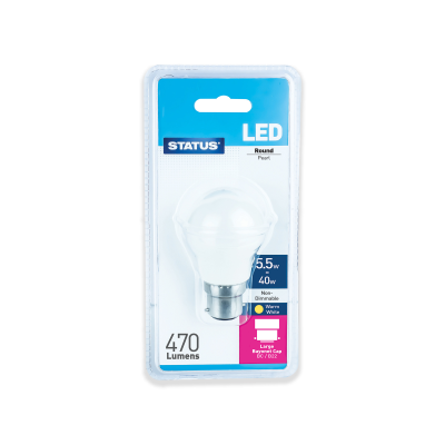 Status LED Round Bulb 5.5W Warm White BC Clam Pack
