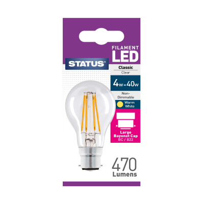 Status LED Clear Filament GLS Bulb 4.5W Warm White BC Box Pk