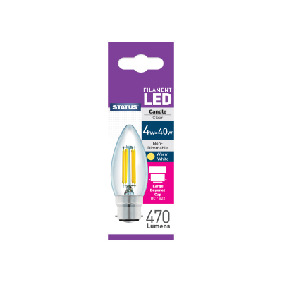 Status LED Clear Filament Candle Bulb 4.5W Warm White BC Box