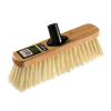 - The broom head is made of soft PVC bristles with a varnished wooden stock